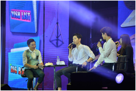 宋仲基欧巴真的很努力,为粉丝实现愿望清单,朗诵中文诗、波斯美女动作献爱意给“松果”、为生日粉丝唱生日歌送祝福等。温暖的笑容,宠溺的口吻,一度迷倒众粉丝,引爆见面会现场高潮。