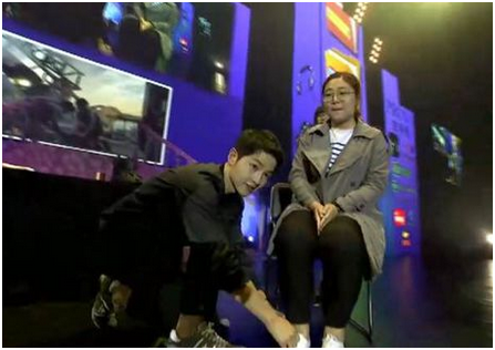 终于到了令人期待的游戏环节,干瞪眼、赞赞赞、石头剪刀布等让幸运粉丝又一次亲密接触仲基欧巴,并获得了由偶像男神亲手递出的星空·综合体育套装作为参与奖品。