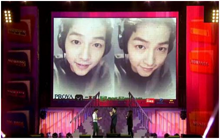 韩国艺人朴宝剑作为特别及粉丝来到现场为宋仲基助阵,调皮的仲基欧巴识破预谋惊喜,并且故意安排二次出场“表露惊讶”。随后仲基欧巴邀朴宝剑弹琴伴奏,送上《太后》的主题曲《少女》,两人第一次的合作可谓默契连连!